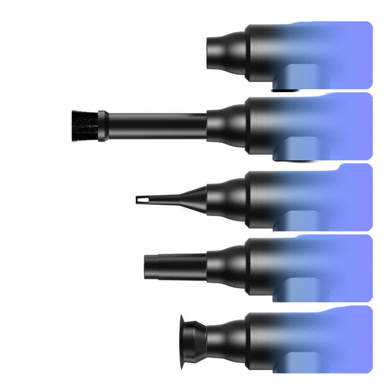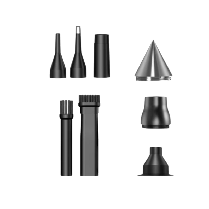 מגיע עם סט מלא של זרבוביות אוויר מדויקות — רחבות, צרות, בצורת חרוט ובעלות מברשות — מושלמות לכל דבר, החל מפינות צרות ועד משטחים עדינים.